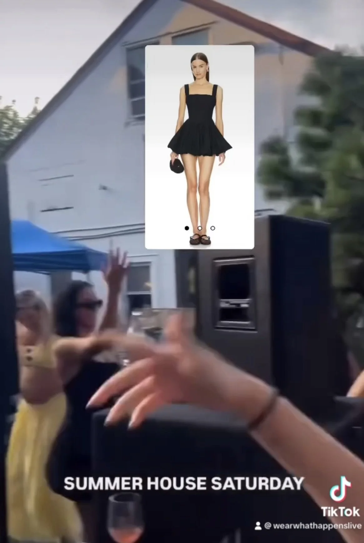 Spotted in the background of Jesse Solomon’s instagram story last summer, you can see Danielle dancing during one of Kyle’s DJ sets in Montauk. Check out the dress she wore below.